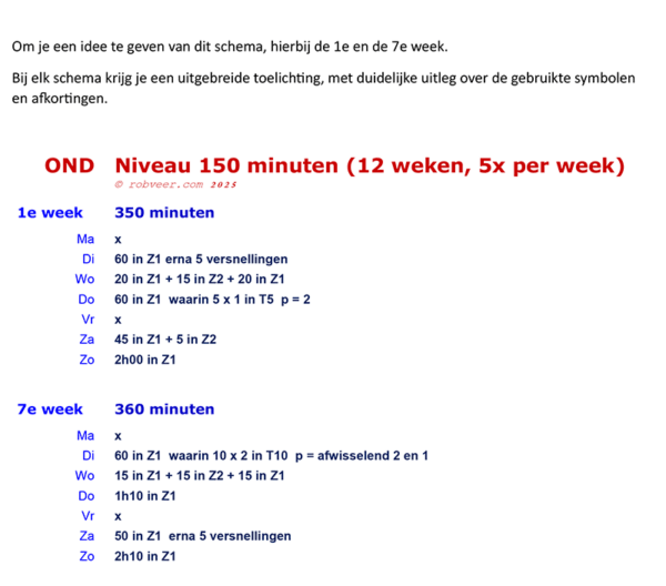 hardlopen en graag dat niveau vast willen houden, met vijf trainingen in de week. Het schema