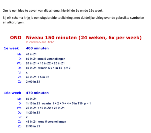 Het schema is geschikt voor hardlopers die zonder problemen twee en een half uur kunnen