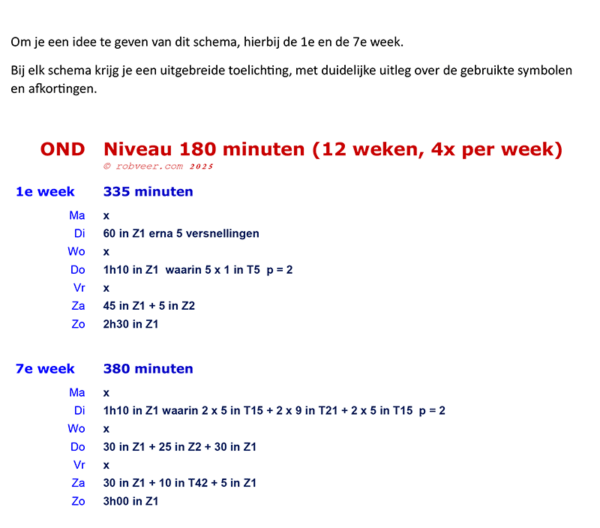 dat niveau vast willen houden, met vier trainingen in de week. Het schema beslaat 12 weken.