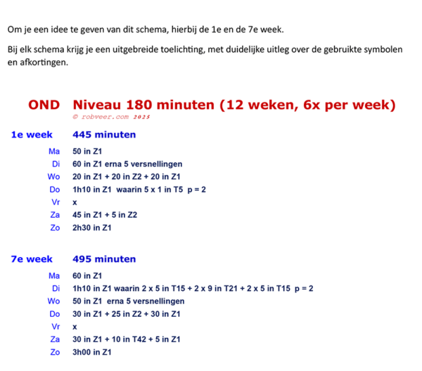 dat niveau vast willen houden, met zes trainingen in de week. Het schema beslaat 12 weken.