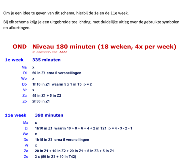 dat niveau vast willen houden, met vier trainingen in de week. Het schema beslaat 18 weken.