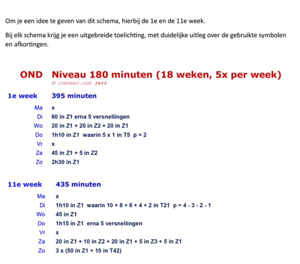 dat niveau vast willen houden, met vijf trainingen in de week. Het schema beslaat 18 weken.