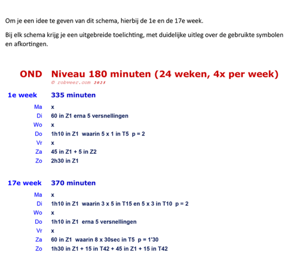dat niveau vast willen houden, met vier trainingen in de week. Het schema beslaat 24 weken.