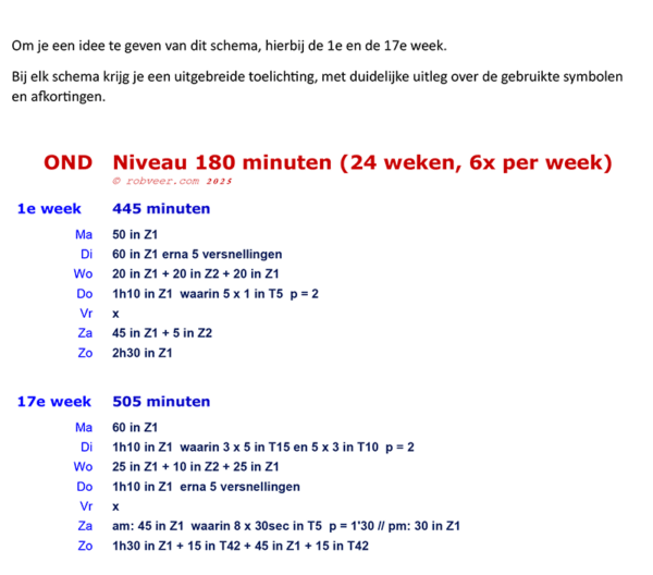 dat niveau vast willen houden, met zes trainingen in de week. Het schema beslaat 24 weken.