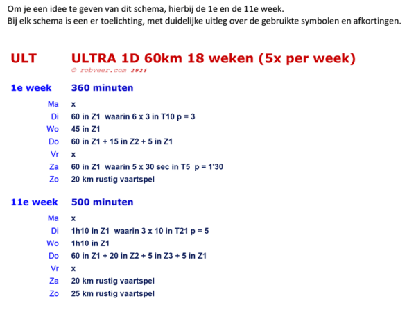 Het schema is geschikt voor hardlopers die zonder problemen 30 km onafgebroken kunnen hardlopen. Het schema werkt in 18 weken toe naar een ultraloop van 60 km (en is daarmee ook geschikt voor ULTRA’s van pakweg 50 tot pakweg 70 km.