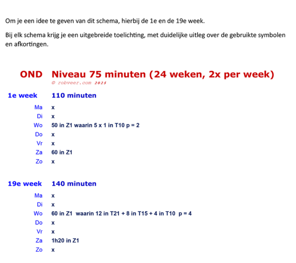 graag dat niveau vast willen houden, met twee trainingen in de week. Het schema beslaat 24 weken.