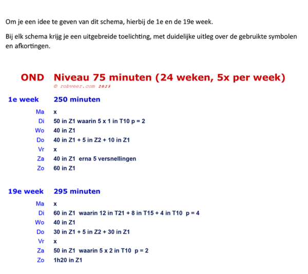 graag dat niveau vast willen houden, met vijf trainingen in de week. Het schema beslaat 24 weken.