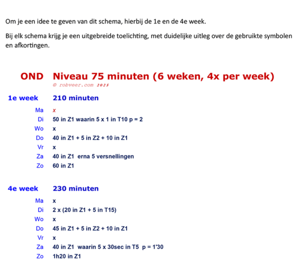 graag dat niveau vast willen houden, met vier trainingen in de week. Het schema beslaat 6 weken.