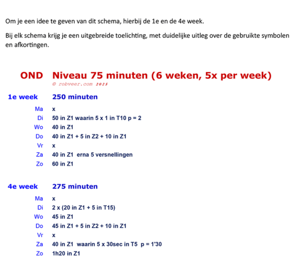 graag dat niveau vast willen houden, met vijf trainingen in de week. Het schema beslaat 6 weken.
