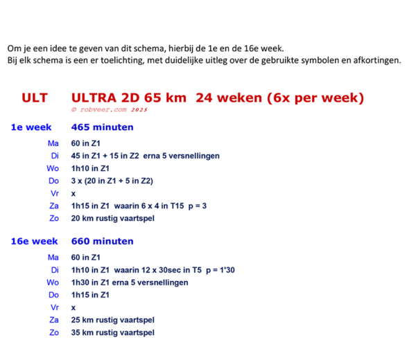 Het schema is geschikt voor hardlopers die momenteel ten minste 30 km probleemloos kunnen hardlopen en gewend zijn aan trainingsweken met een omvang van pakweg 70-80 km. Het schema werkt in 24 weken toe naar een evenement met twee opeenvolgende dagen hardlopen, met afstanden van 35 – 55 km. Het schema is zeker ook geschikt om je voor te bereiden op een drie daags evenement.