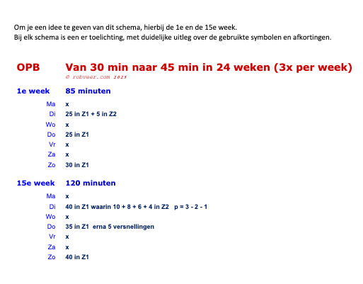 Dit schema is geschikt voor hardlopers die zonder problemen 30 minuten onafgebroken kunnen hardlopen. Elke week worden er drie hardlooptrainingen gedaan. In 24 weken werk je toe naar een niveau waarop je 45 minuten onafgebroken kunt hardlopen. Wil je sneller opbouwen, kies dan de variant ‘in 18 weken’.