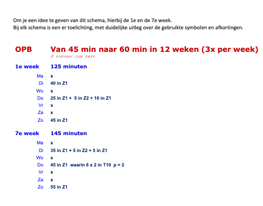 Dit schema is geschikt voor hardlopers die zonder problemen 45 minuten onafgebroken kunnen hardlopen. Elke week worden er drie hardlooptrainingen gedaan. In 12 weken werk je toe naar een niveau waarop je 60 minuten onafgebroken kunt hardlopen. Wil je rustiger opbouwen, kies dan de variant ‘in 18 weken’.